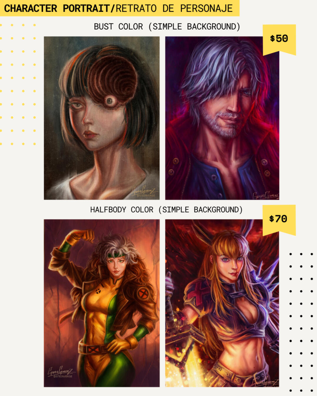 Hi everyone! I’m Guido, digital illustrator. I specialize mainly in portraits, character designs, and fanart inspired by comics, anime, video games, and pop culture worlds.COMMISSIONS STATUS: OPEN